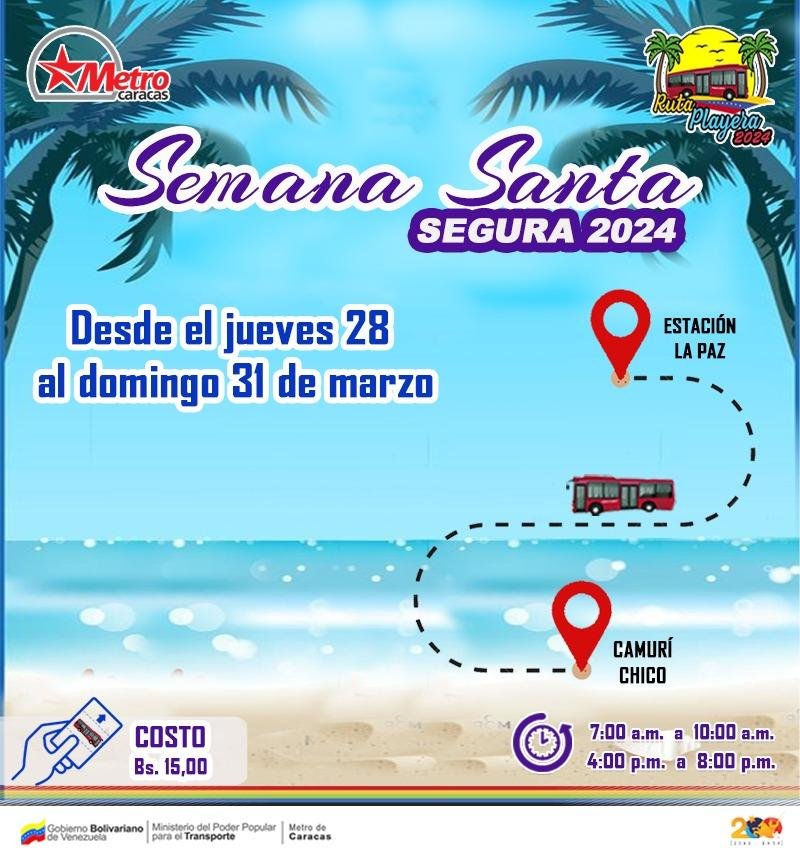 De la mano de la Gran Misión Transporte Venezuela, a partir del día jueves 28 de marzo y hasta el domingo 31, estará activa la ruta playera Semana Santa 2024, se reseña en NDP.