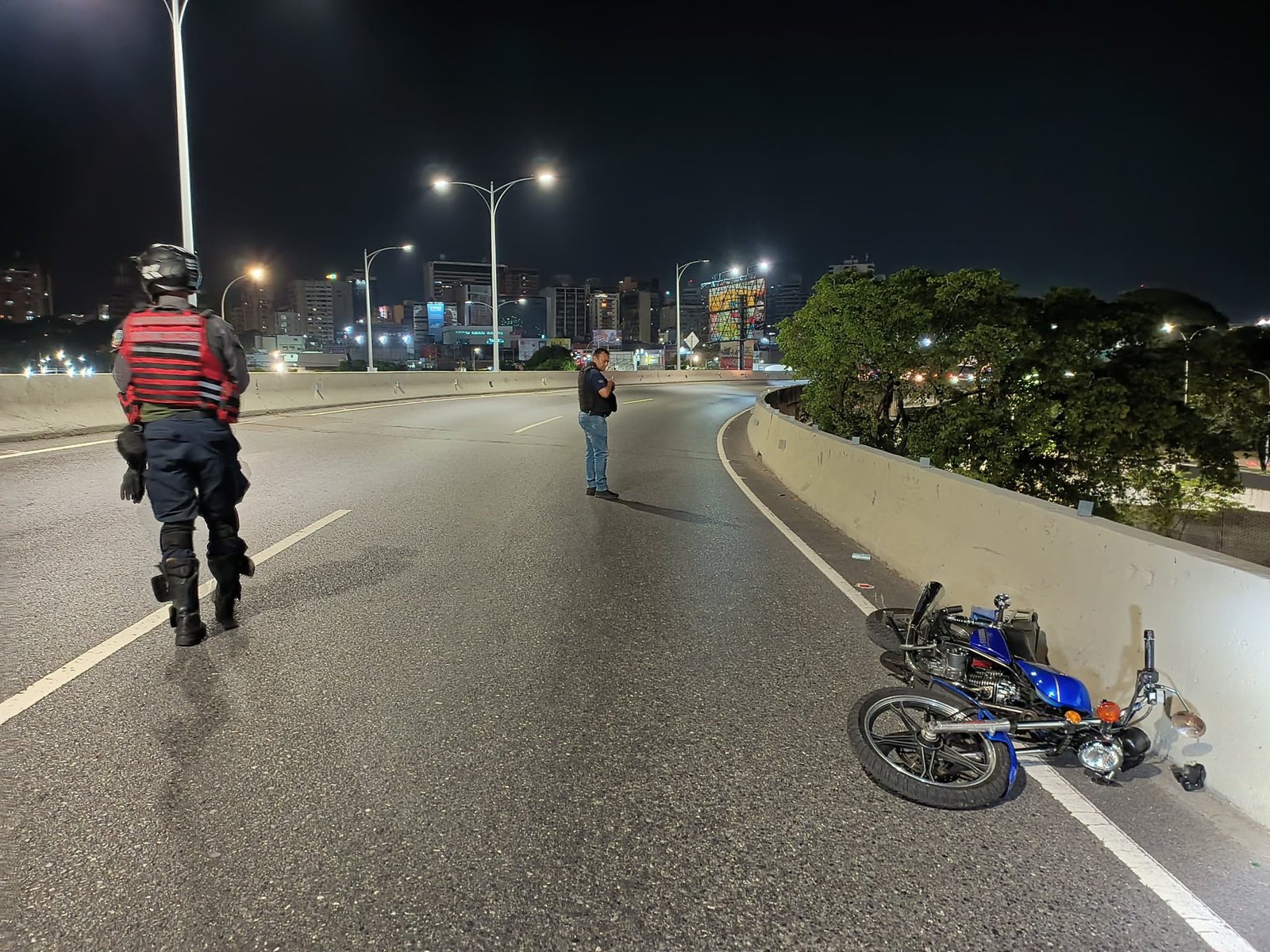 En horas de la madrugada -aproximadamente a la 1:30 AM- de este sábado 27 de abril, se reportó un accidente en moto en el Distribuidor Prados del Este sentido oeste.