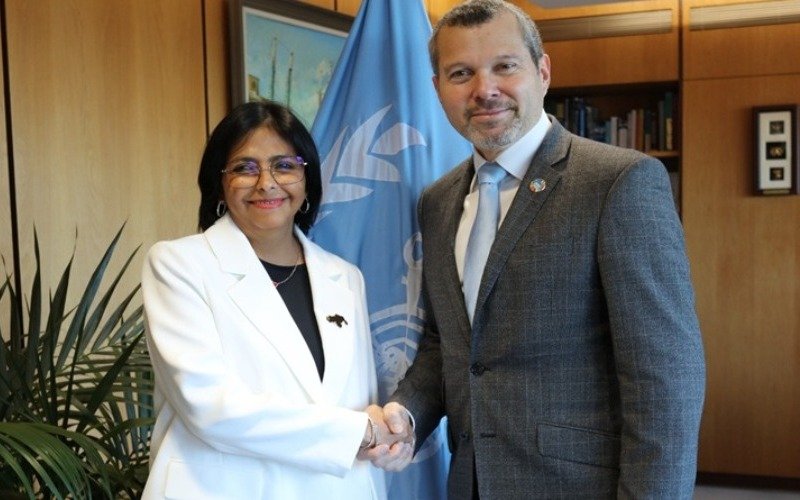 La vicepresidenta ejecutiva de Venezuela, Delcy Rodríguez , celebró una reunión de trabajo con el secretario general de la Organización Marítima Internacional (OMI), Arsenio Domínguez , en Londres, Inglaterra , en la cual, denunció las consecuencias del bloqueo ilegal y las medidas coercitivas unilaterales contra Venezuela.